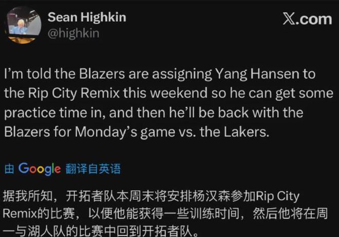 NBA方面今天传来了一个消息:开拓者宣布从NBA发展联盟召回杨瀚森,后者暂时结束了自己在撕裂之城混音队的训练。