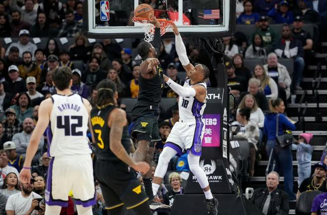 威少打四号位既发挥长处,又掩盖短板,类似乐布朗在掘金的转型效果,上赛季威少和约基奇搭档也试过4号位还不错。威少身高臂长、弹速惊人,若专注防守与篮板,或可进化成顶级功能型大前——火箭的阿门,正是其高大版的年轻威少。今天比赛过程一波三折。首节勇士残阵爆发,库明加、穆迪、理查德火力全开,单节32-25领先7分。国王节奏混乱,投篮打铁,防守漏人。第二节威少站出,带替补冲锋:抢断快攻、抢板二次进攻、外线空位三分稳稳命中。国王不断追分,威少冷静串联,德罗赞中距离跳投复苏,施罗德外线开火,半场追至仅差5分。